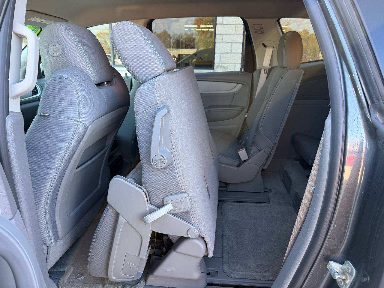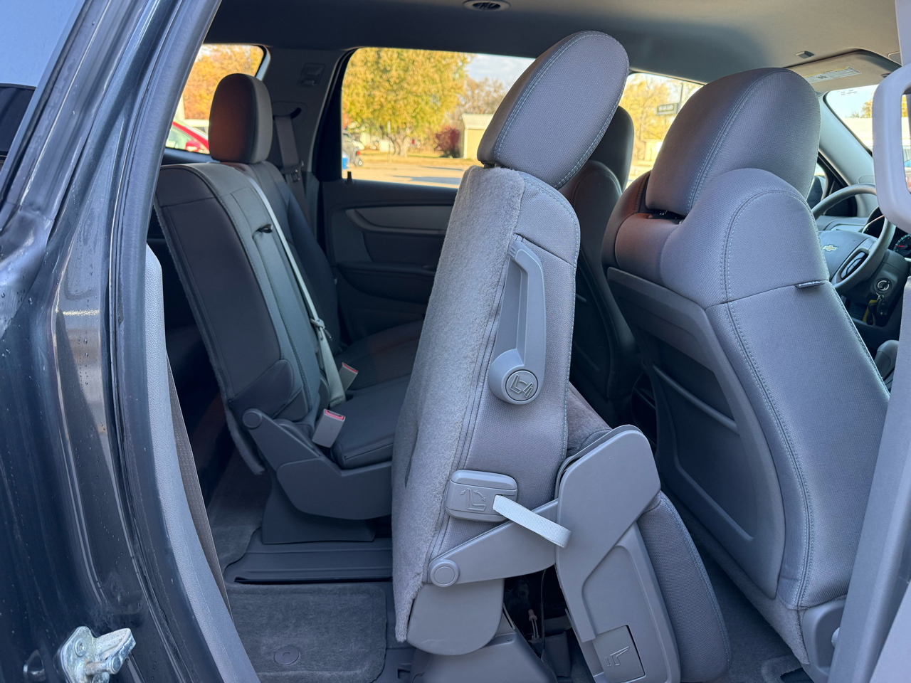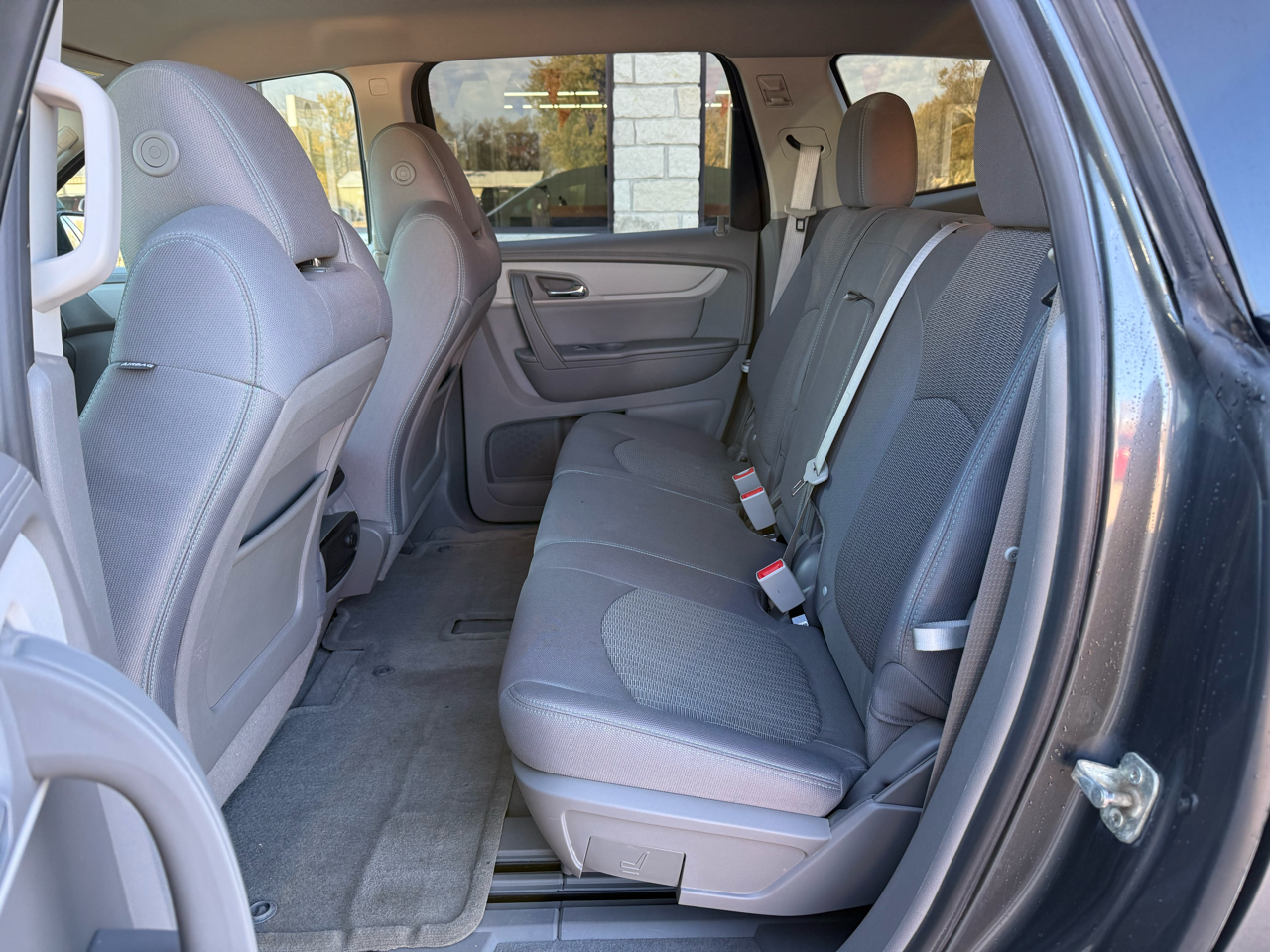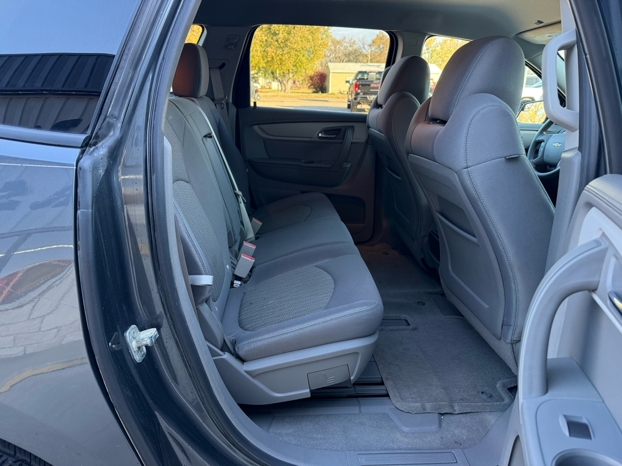 Take control with the steering wheel mounted controls and enjoy the convenience of keyless entry as you hit the road. With its sleek design, rear spoiler, and steel wheels, this Traverse is sure to turn heads wherever you go. The automatic headlights and daytime running lights provide added visibility, while the deep tinted glass offers privacy and protection from the sun.